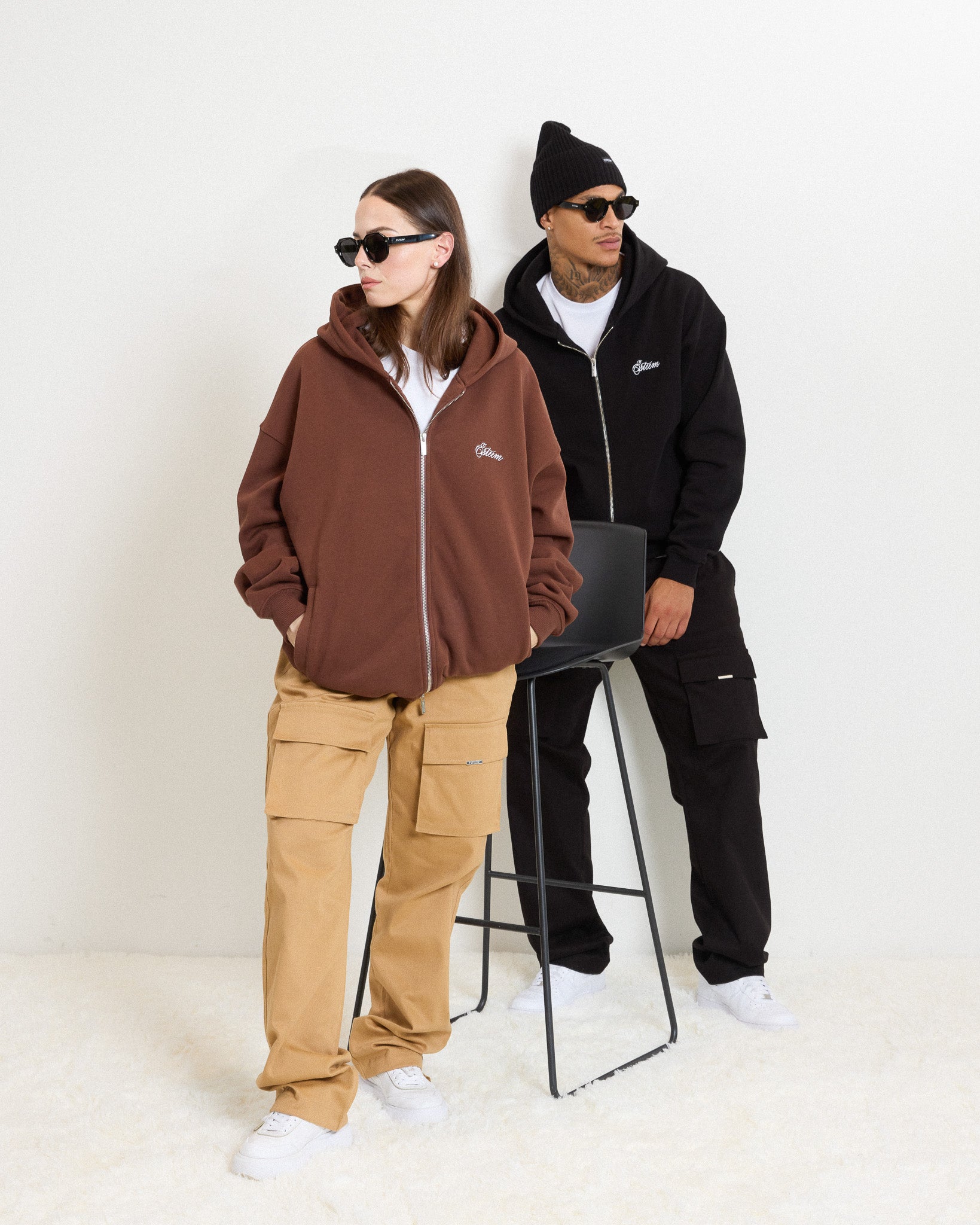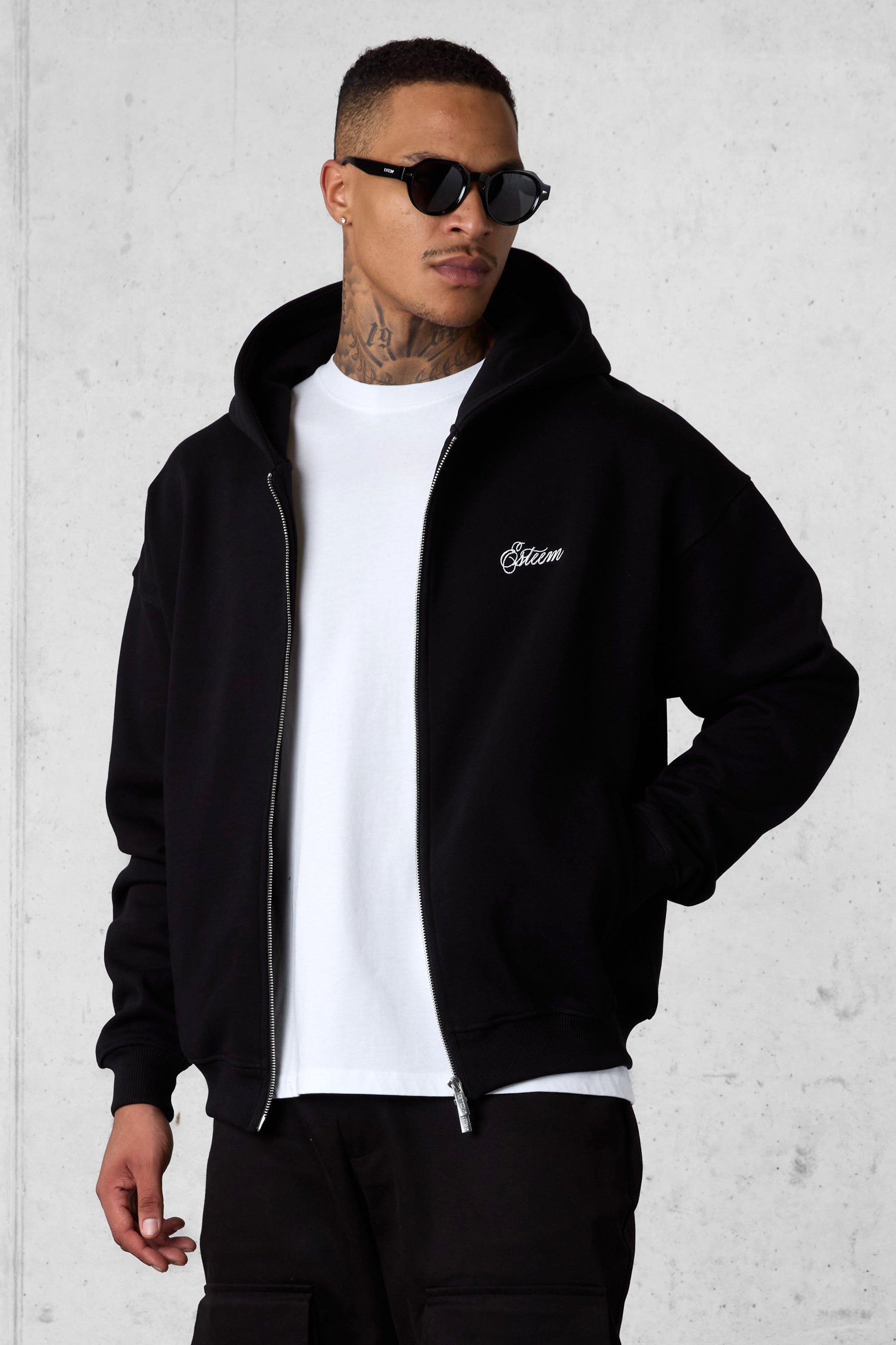 BLACK SIGNATURE OVERSIZED ZIP HOODIE