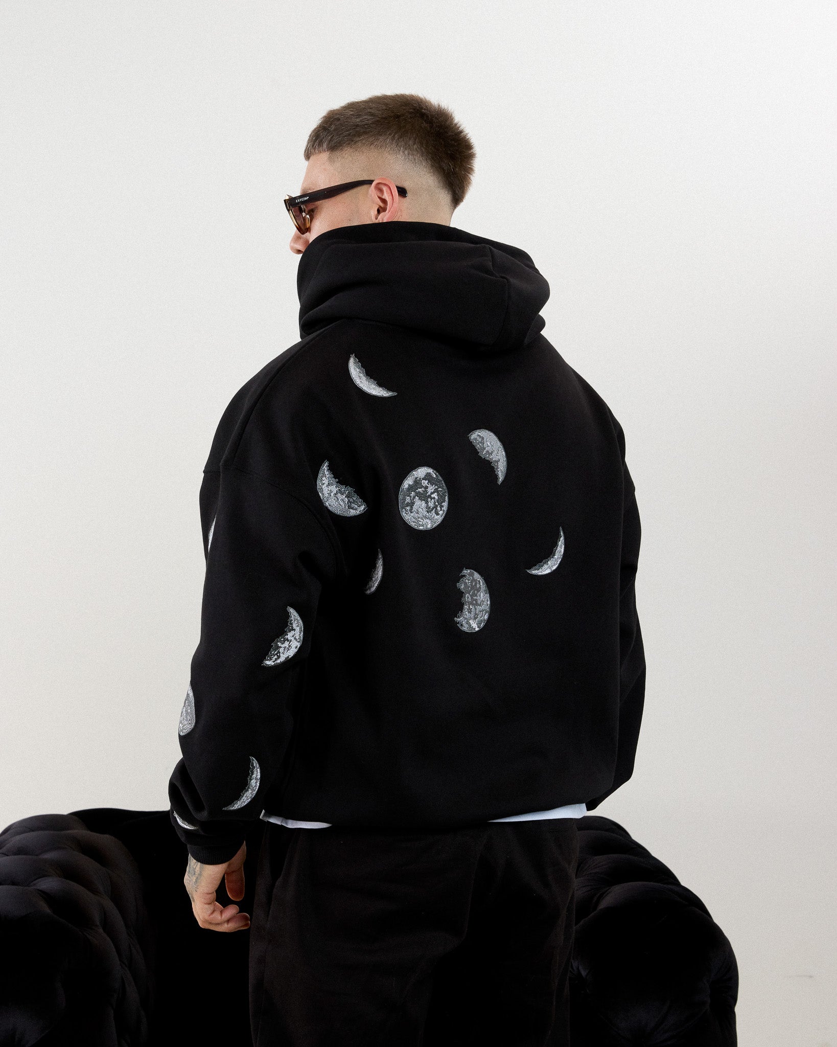 • BLACK SILENT MOTION MOON OVERSIZED HOODIE
