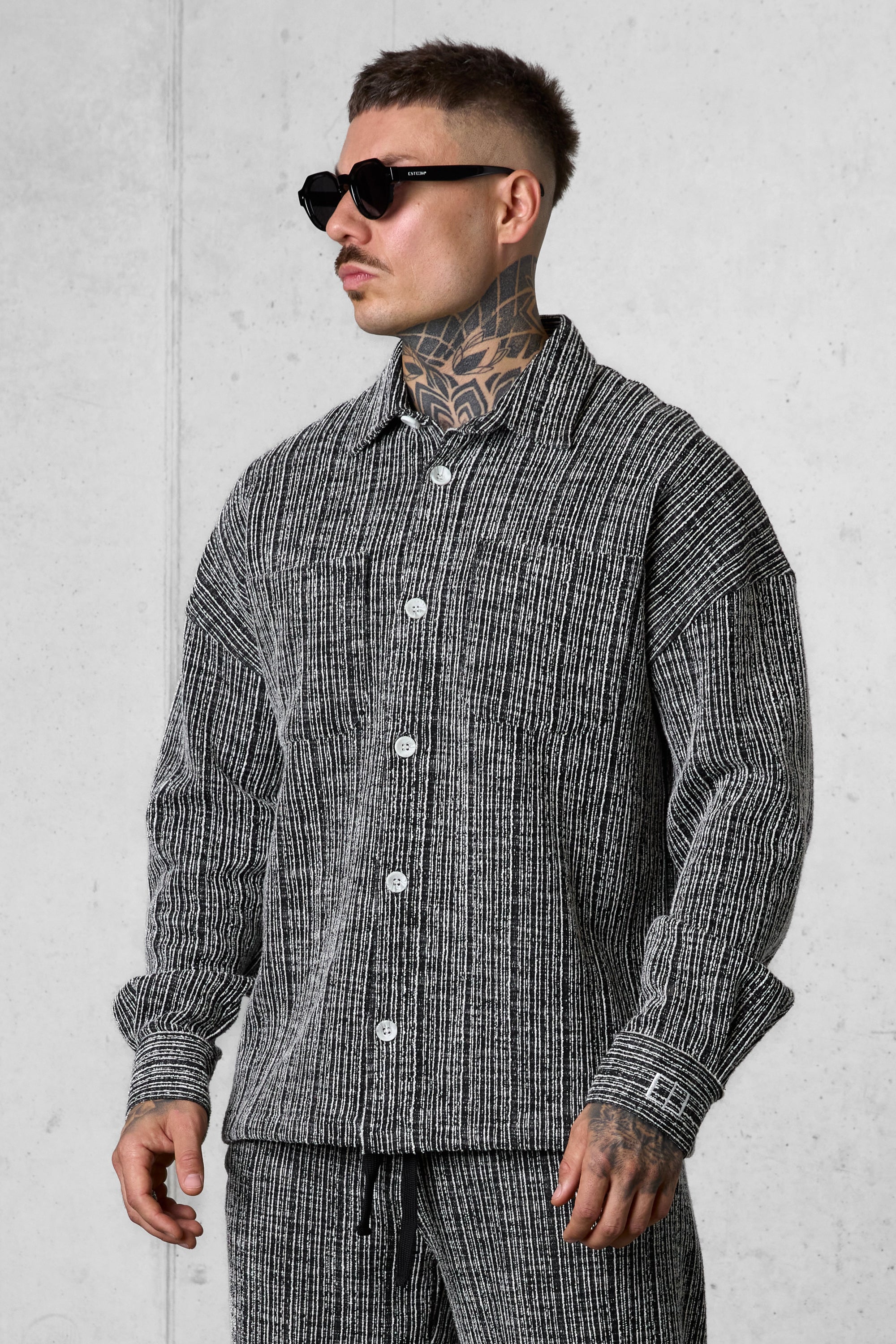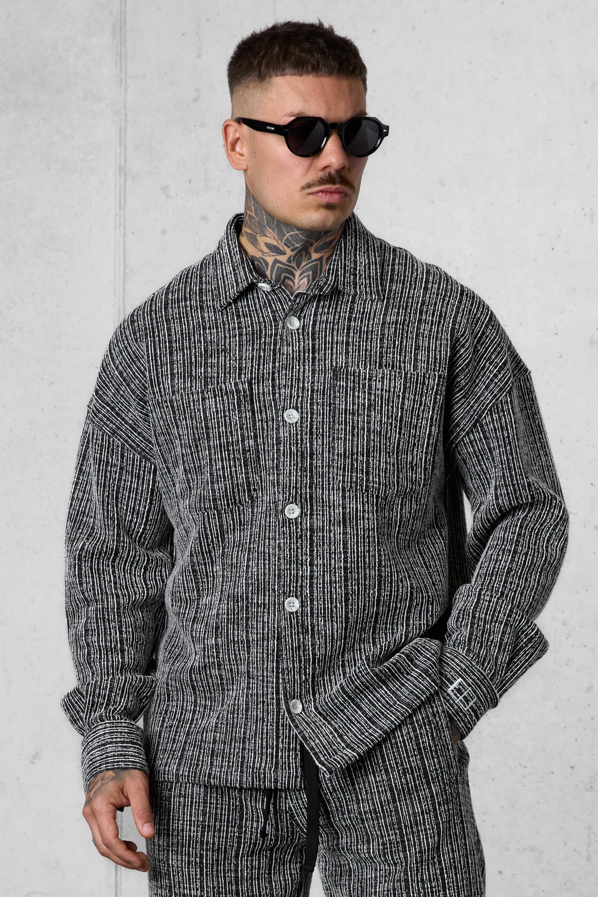 BLACK STRIPED JACQUARD OVERSIZED SHIRT