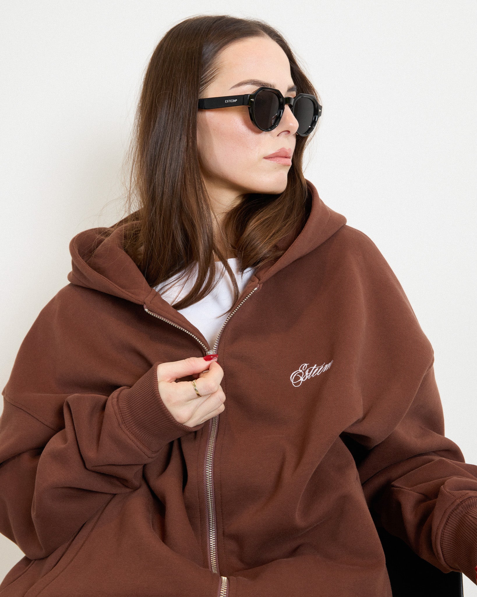 DOWNTOWNBROWN SIGNATURE OVERSIZED ZIP HOODIE