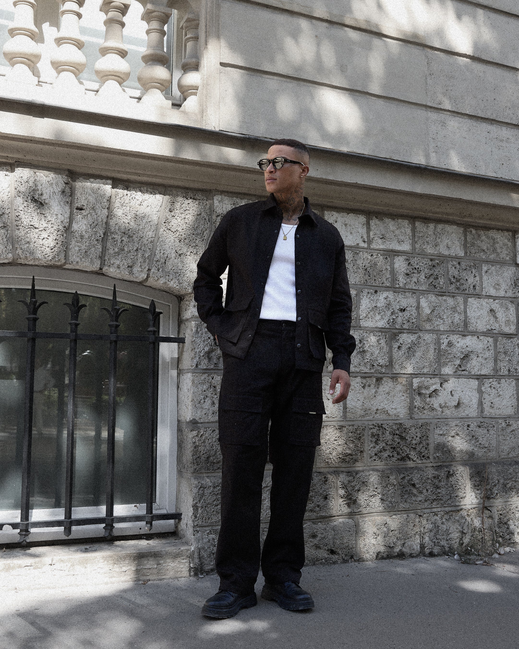 • BLACK CARGO OVERSIZED CHINO SHIRT