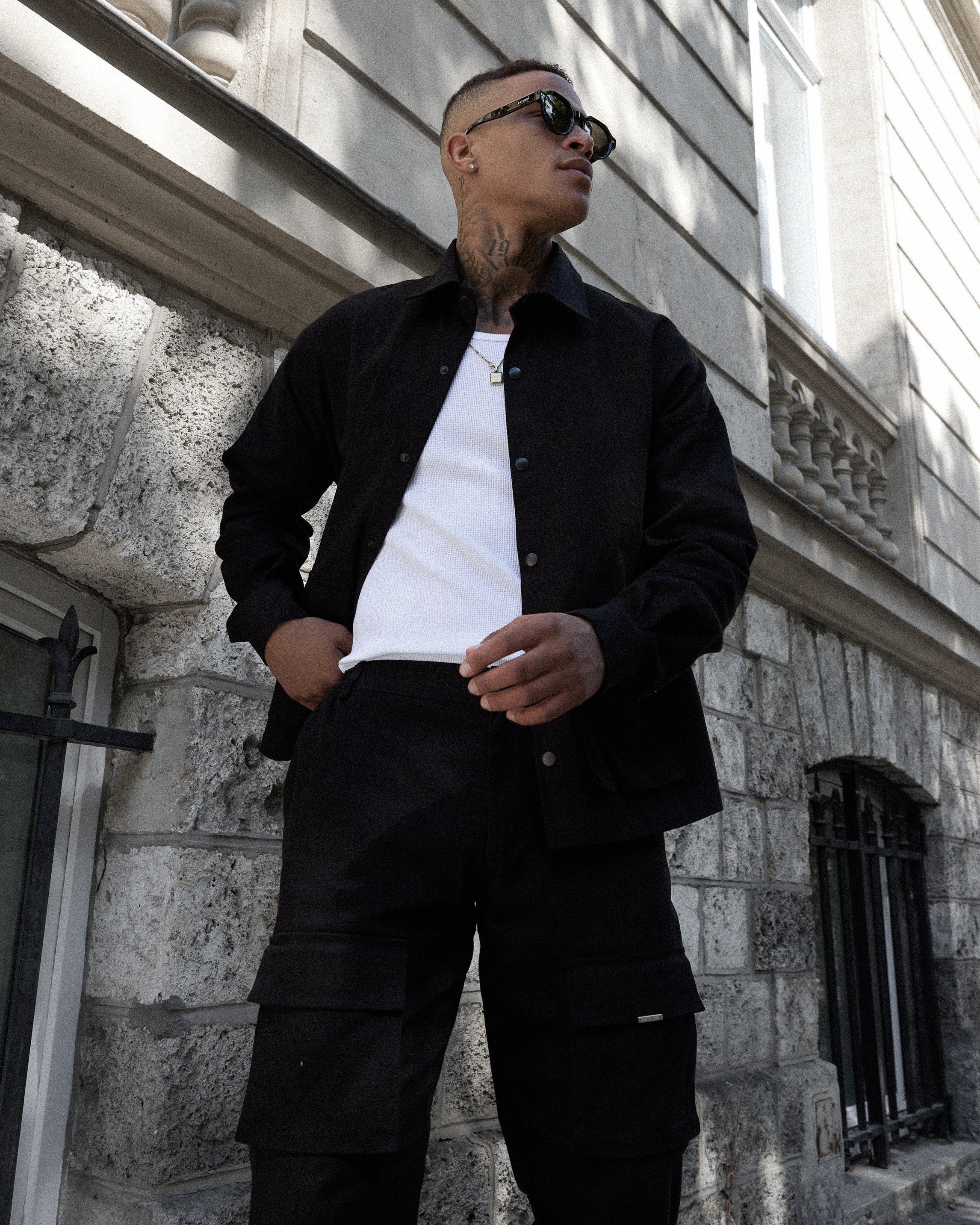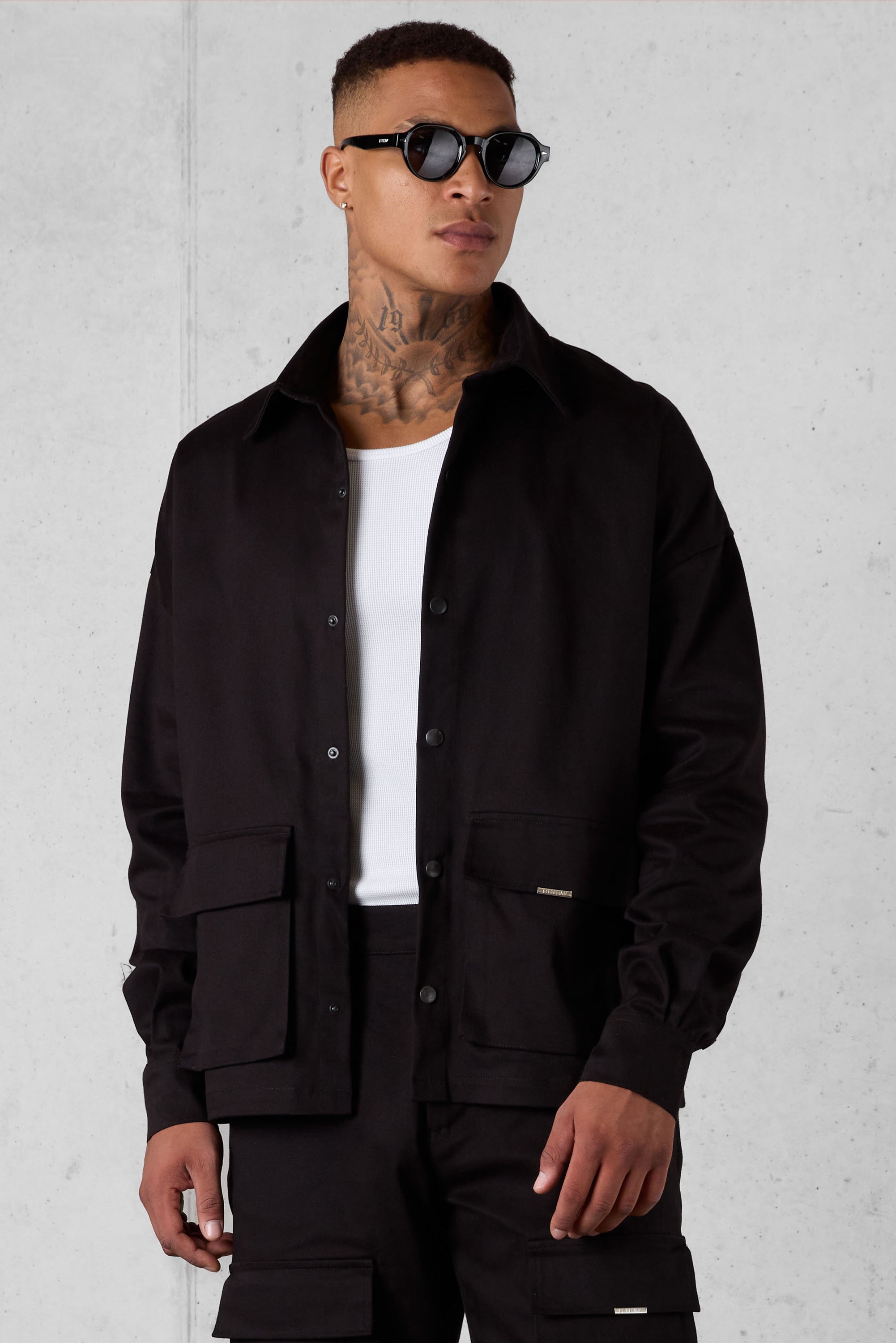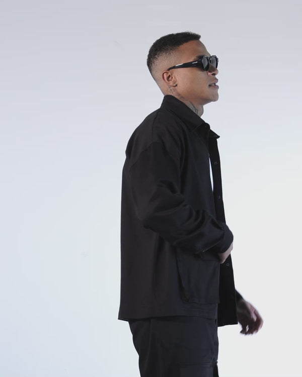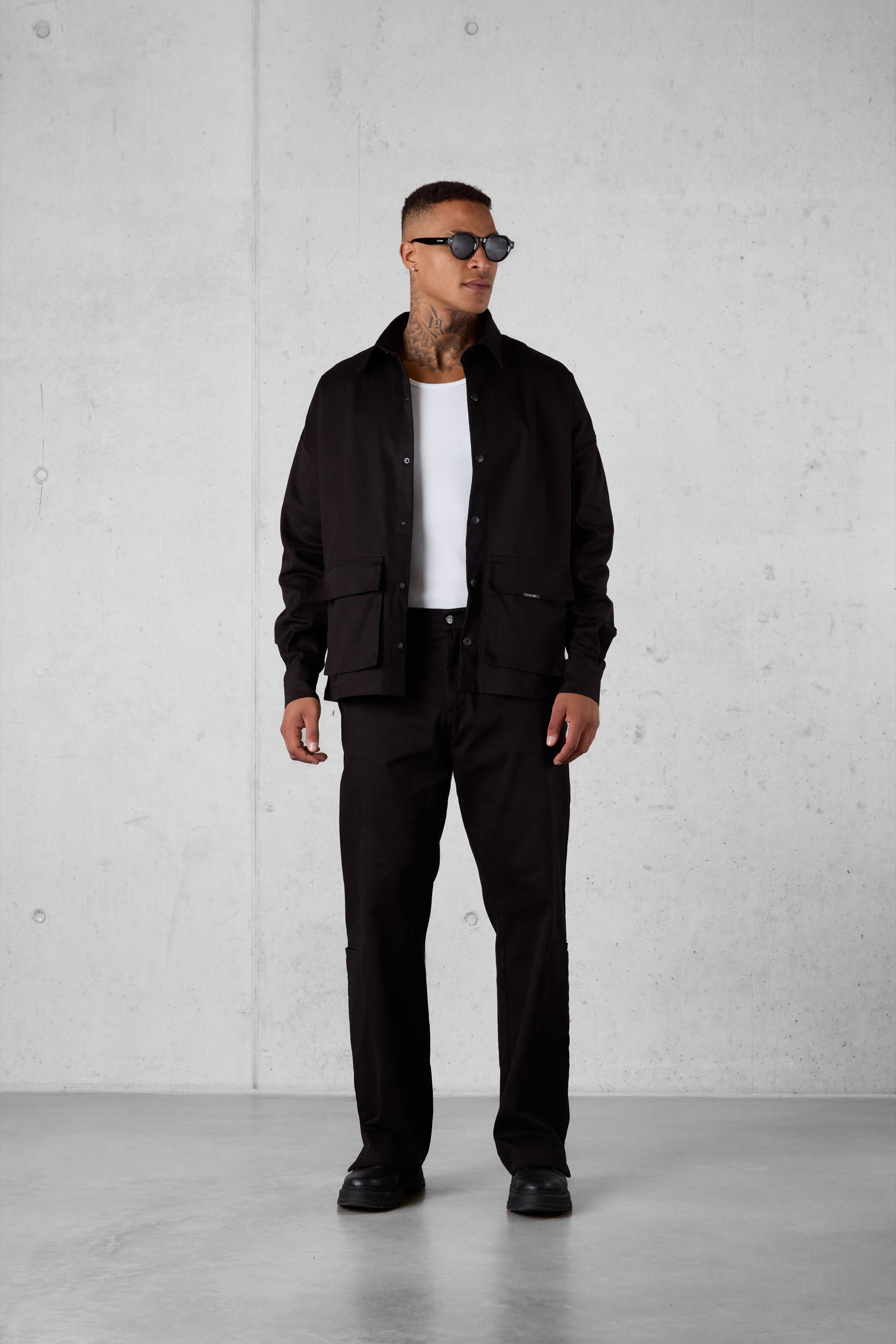BLACK CARGO OVERSIZED CHINO SHIRT
