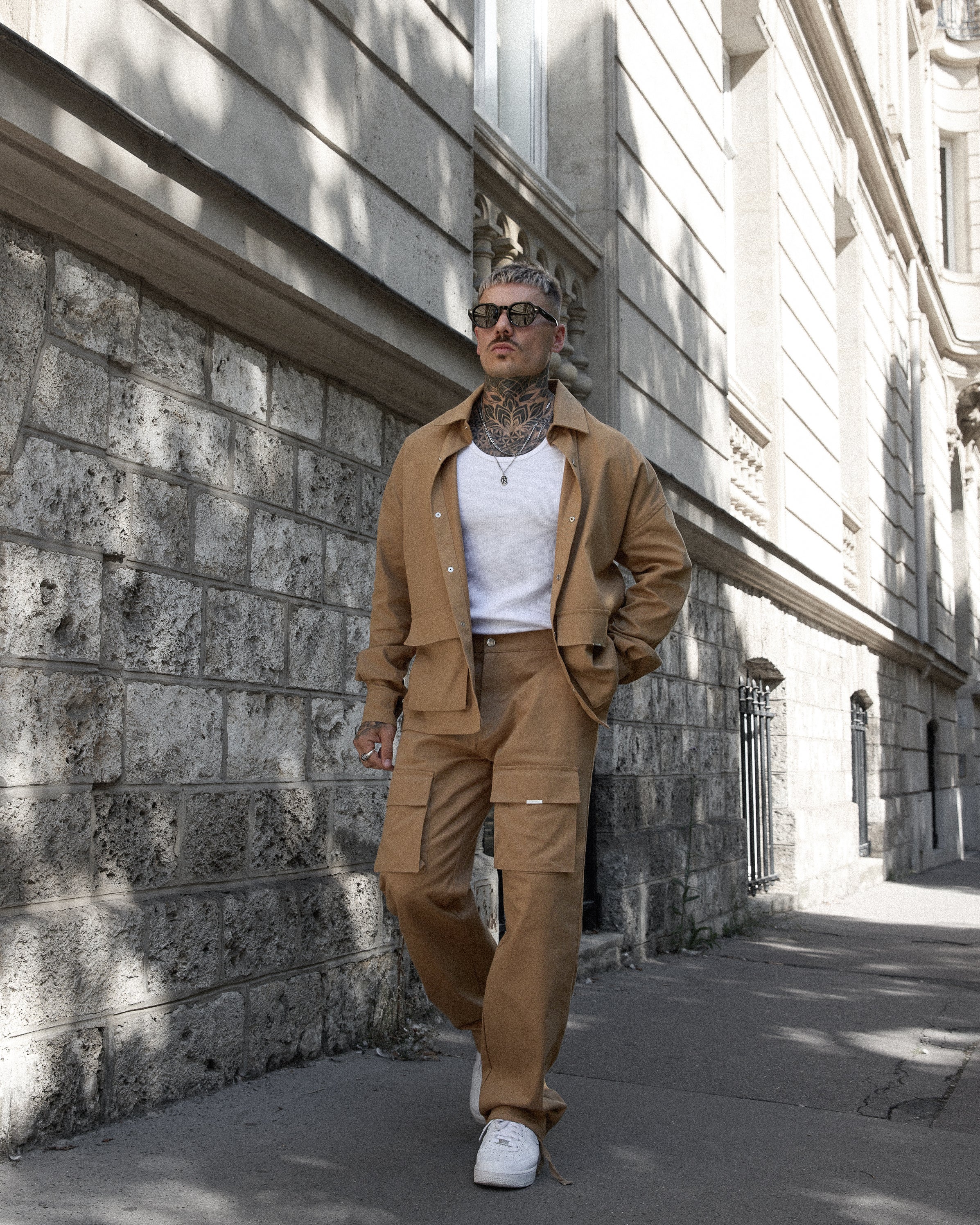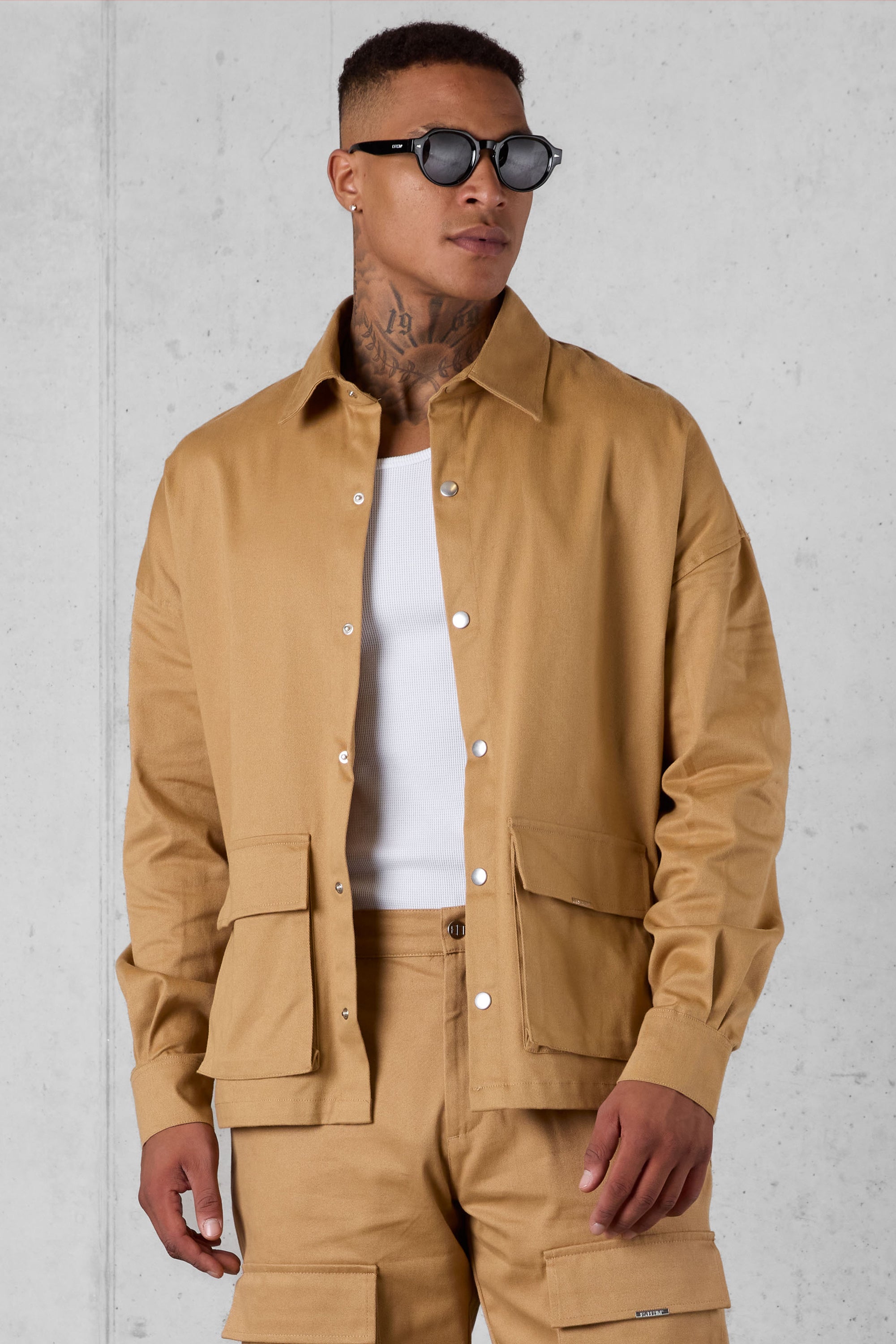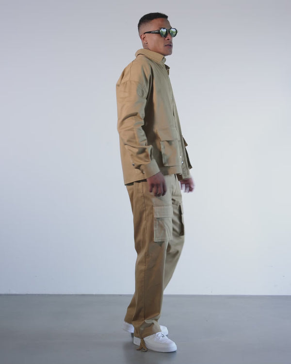 CAMEL CARGO OVERSIZED CHINO SHIRT