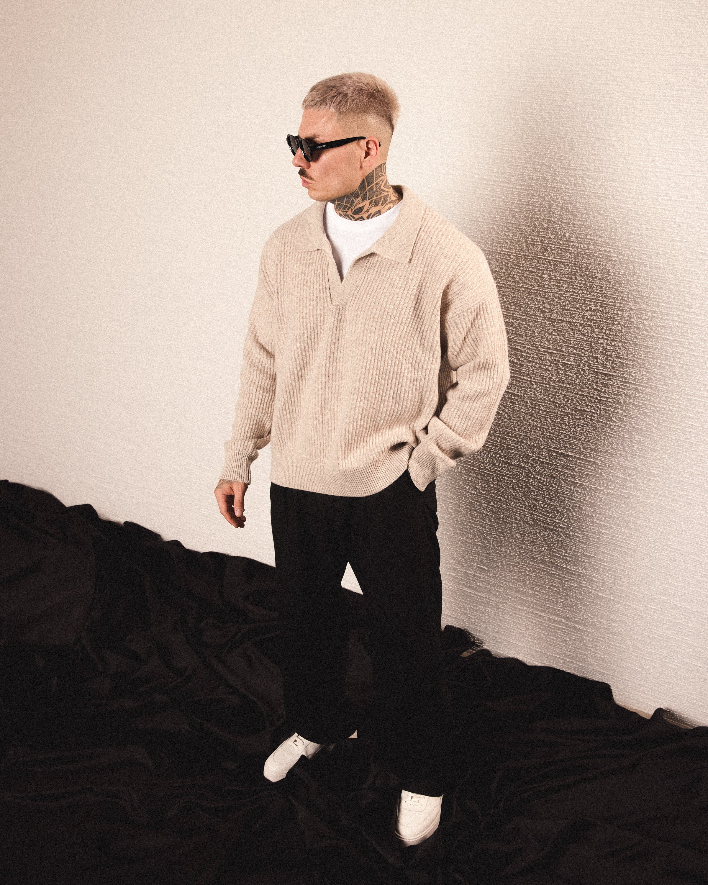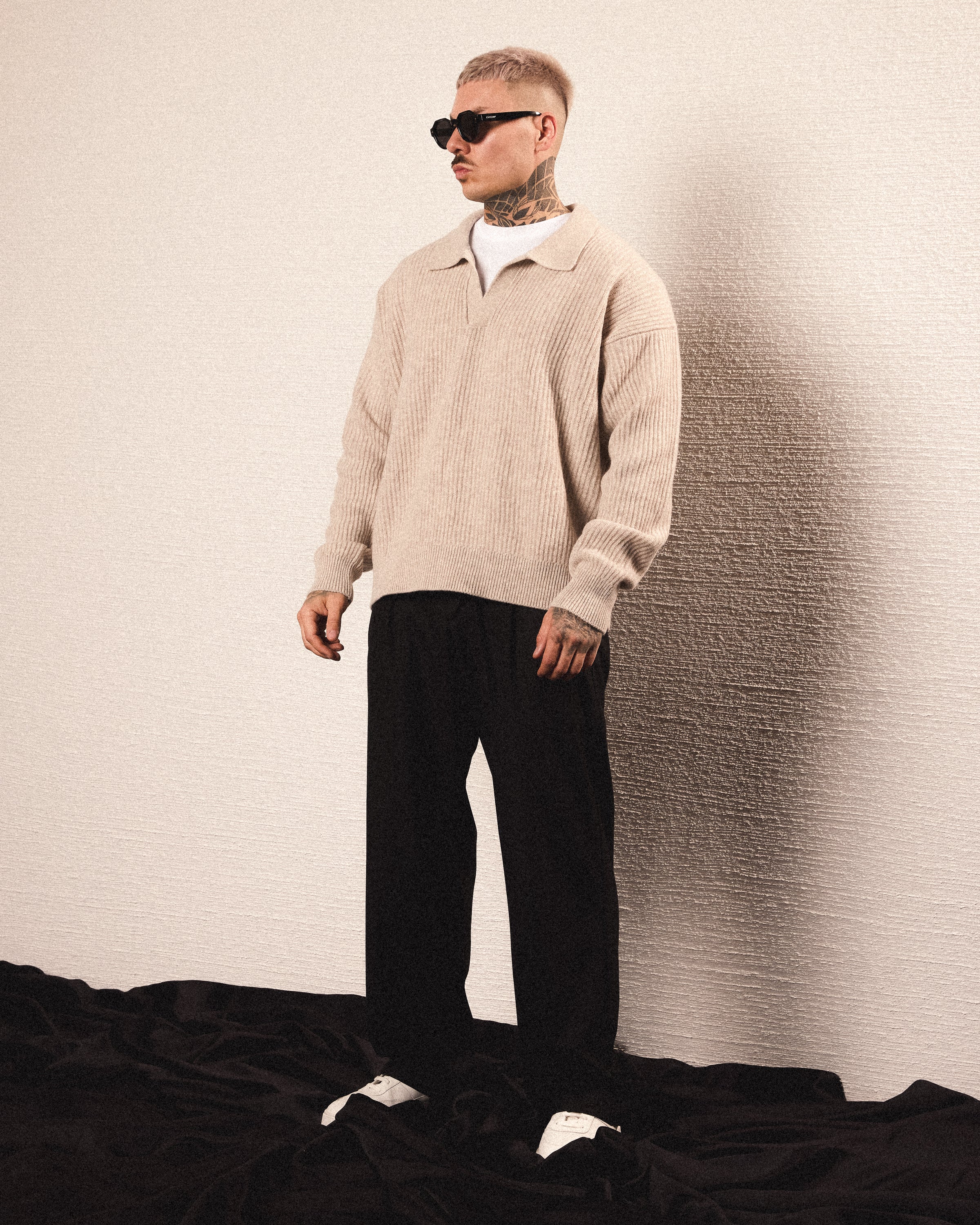 • GREIGE OVERSIZED KNIT POLO SWEATER