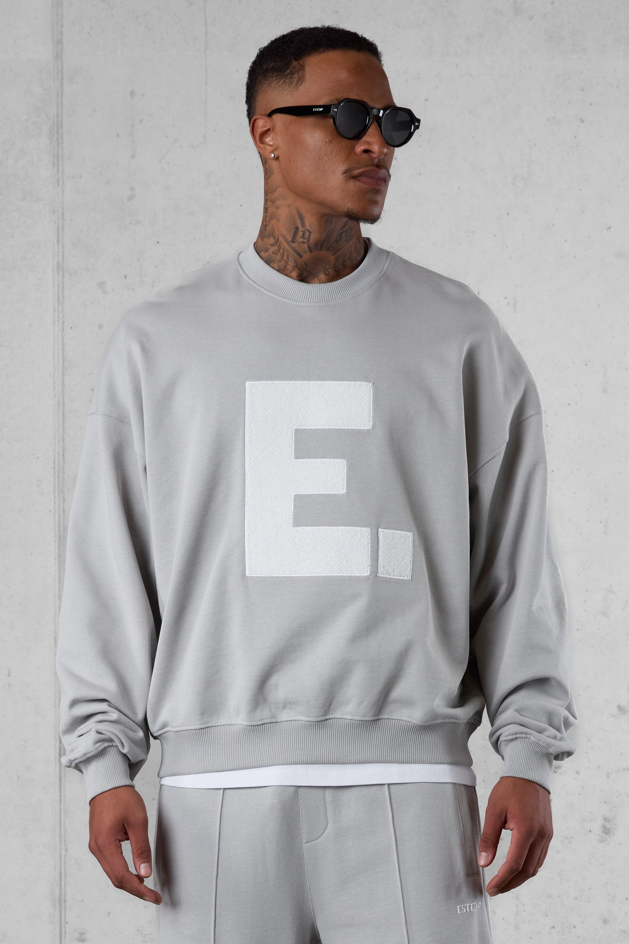 GREY E. STATEMENT APPLIQUÉ OVERSIZED SWEATER