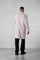 Une silhouette marquante avec le sens du détail : coupe régulière, coutures apparentes et broderie ton sur ton discrète au col.