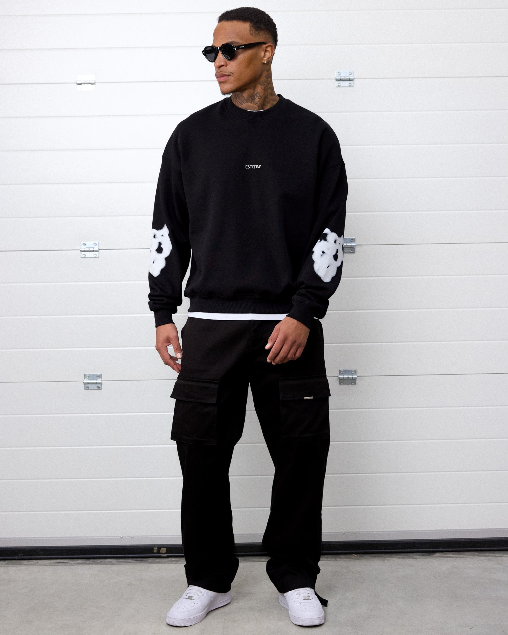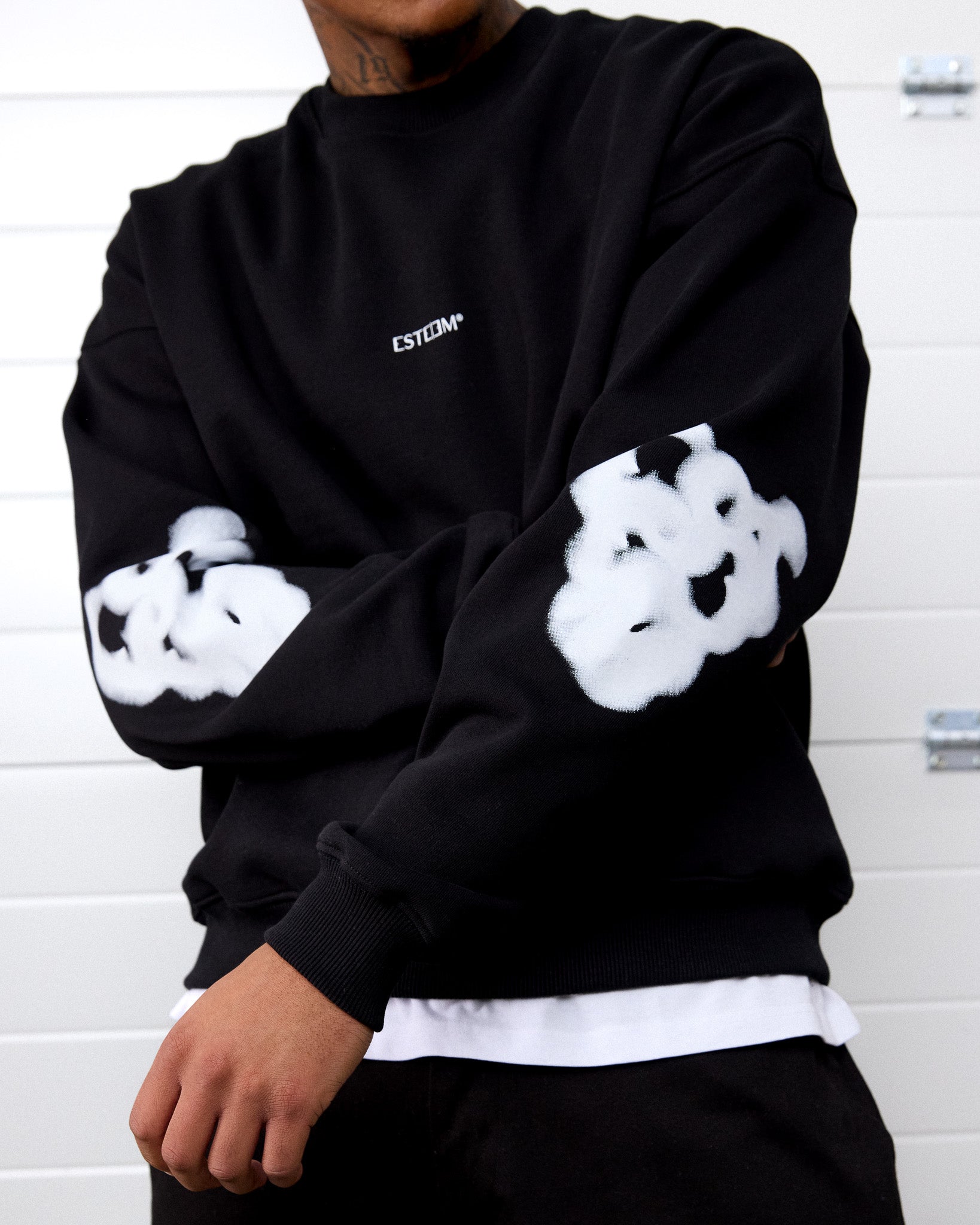• BLACK BLURRED HEARTS OVERSIZED SWEATER