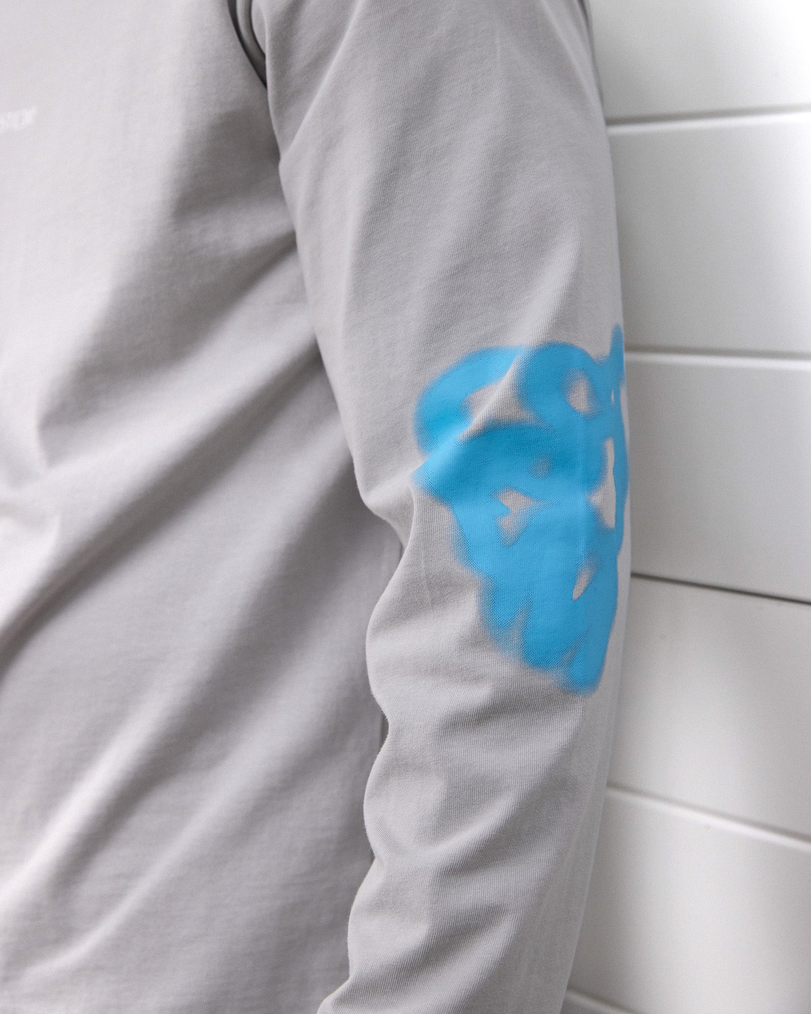 Ein Armprint, der den Schriftzug in eine kreative Blurred-Optik mit angedeuteter Herzform verwandelt – auf beiden Ärmeln platziert.